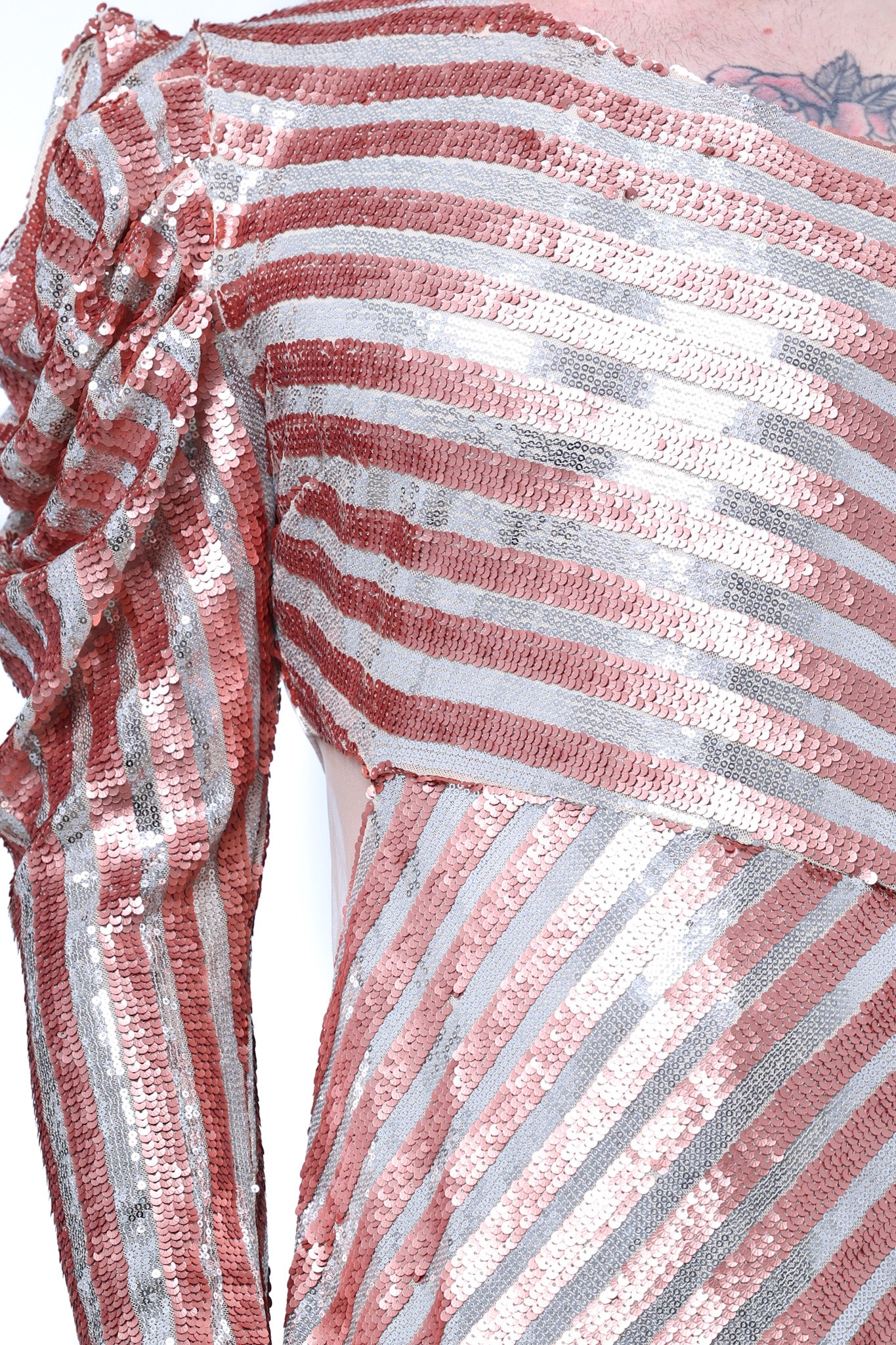 The One-Shoulder Sequin Dress is a captivating blend of elegance and allure, shimmering in chic cream and pinkish hues. With its flattering silhouette and sultry one-shoulder design, it’s perfect for making a statement at any occasion.