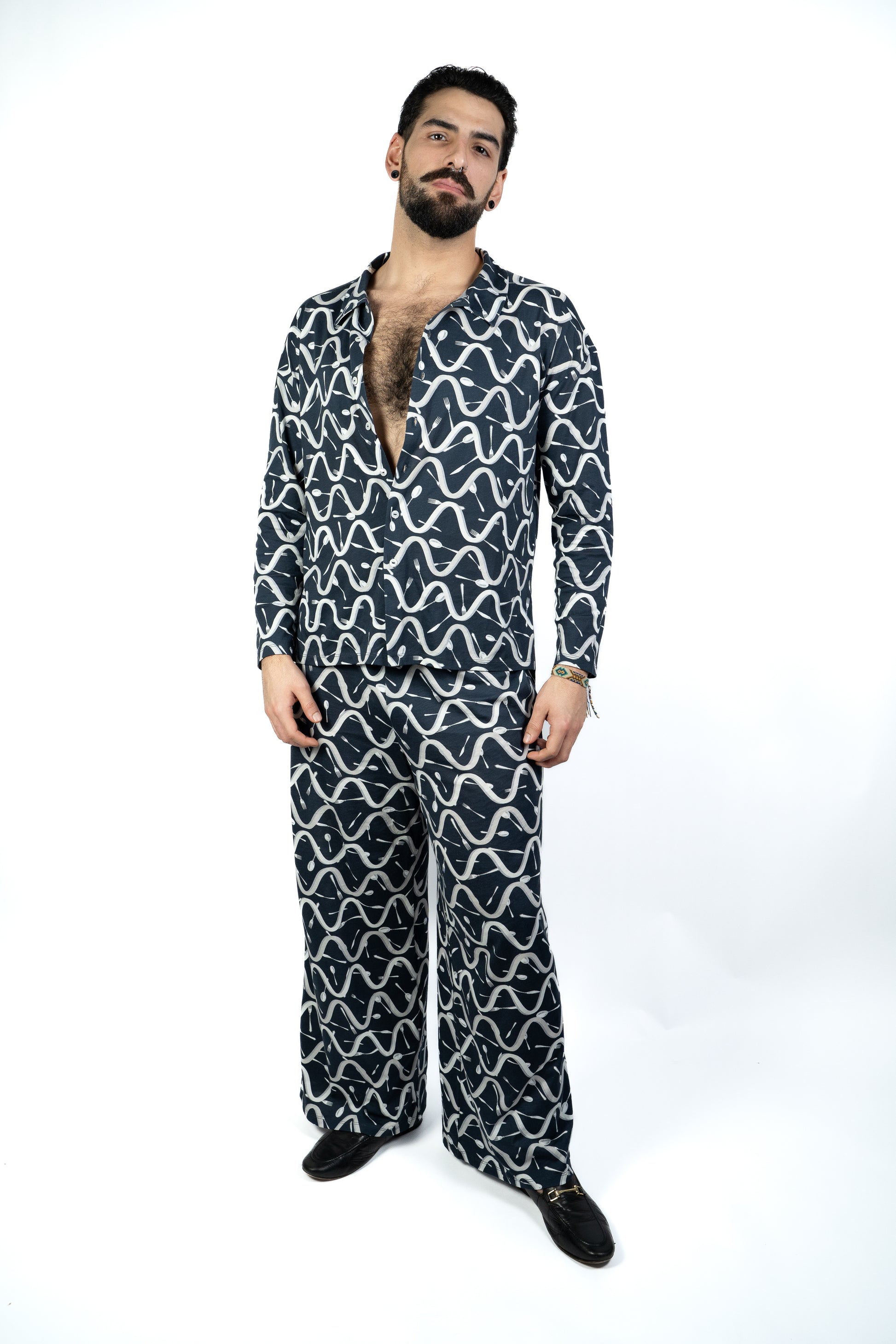The Chicago Dinner Set is a bold, stylish ensemble that combines daring design with ultimate comfort. Featuring a standout top by Iniqual and matching bottoms with the exclusive “Dinner in Chicago” print, this set exudes confidence and individuality. Inspired by Judy Chicago’s art, its vibrant illustrations and subtle gray accents make it both chic and casual.