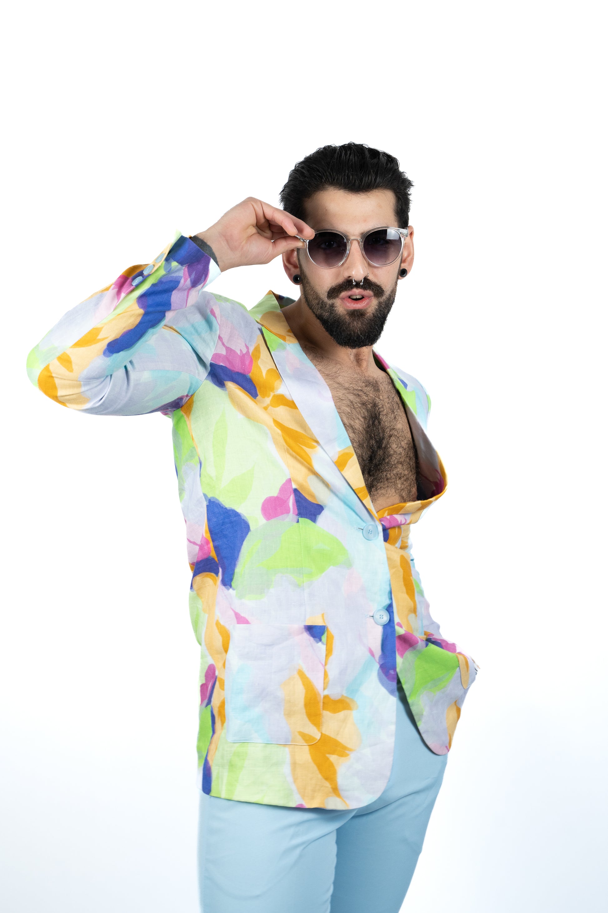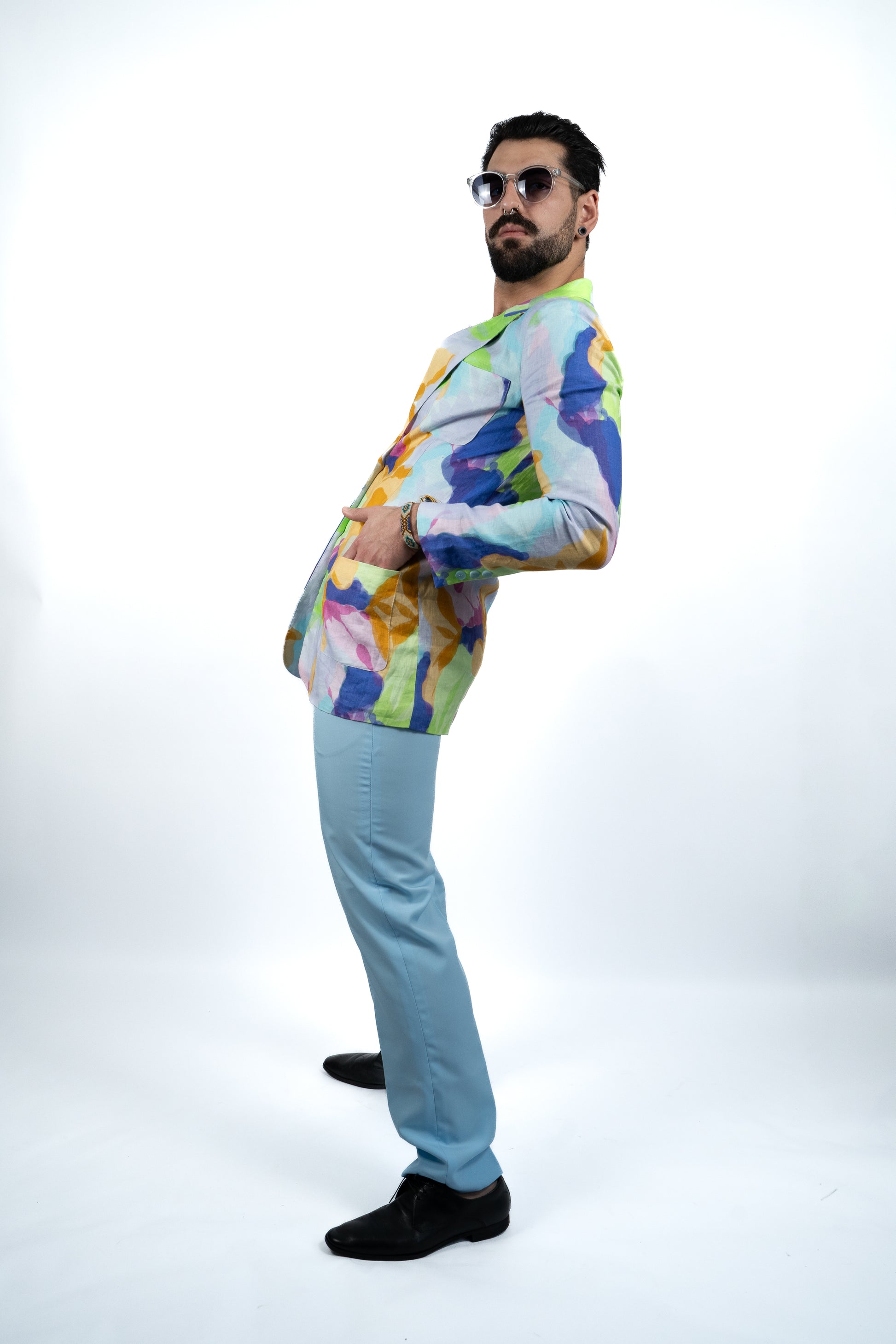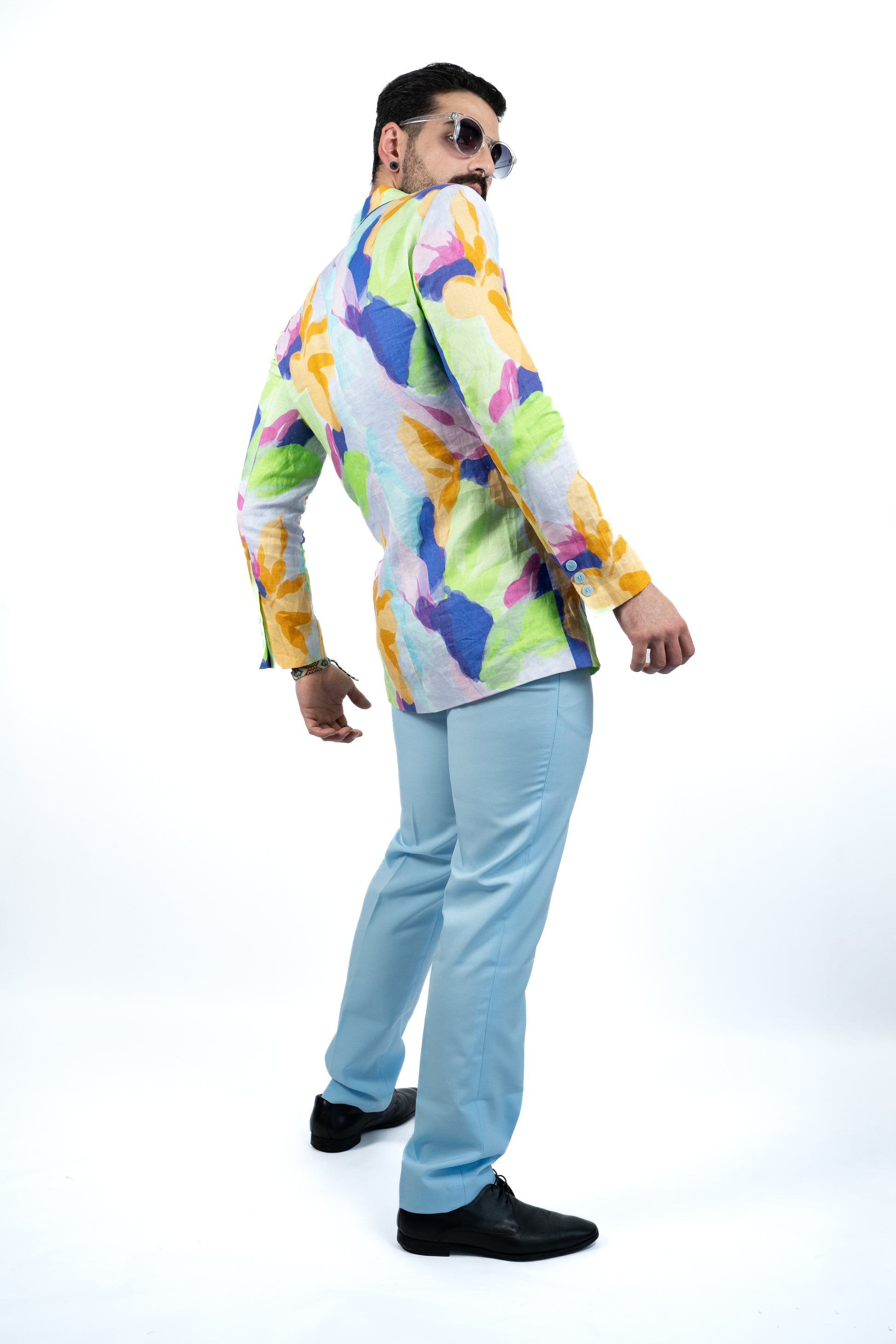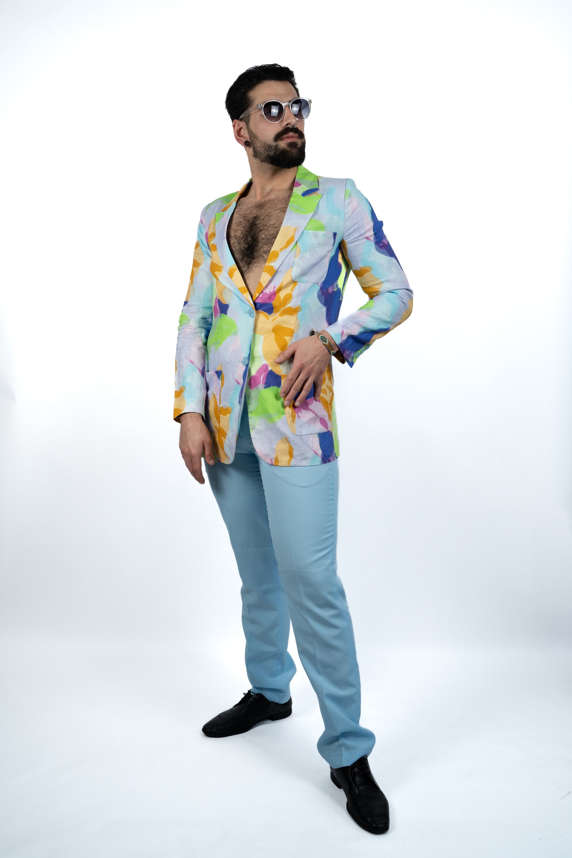 The Mia White full linen suit from Milan is crafted from lightweight, breathable Italian linen, perfect for summer. This elegant white outfit features a tailored top and flowy shorts resembling a skirt, blending sophistication, comfort, and modern style.