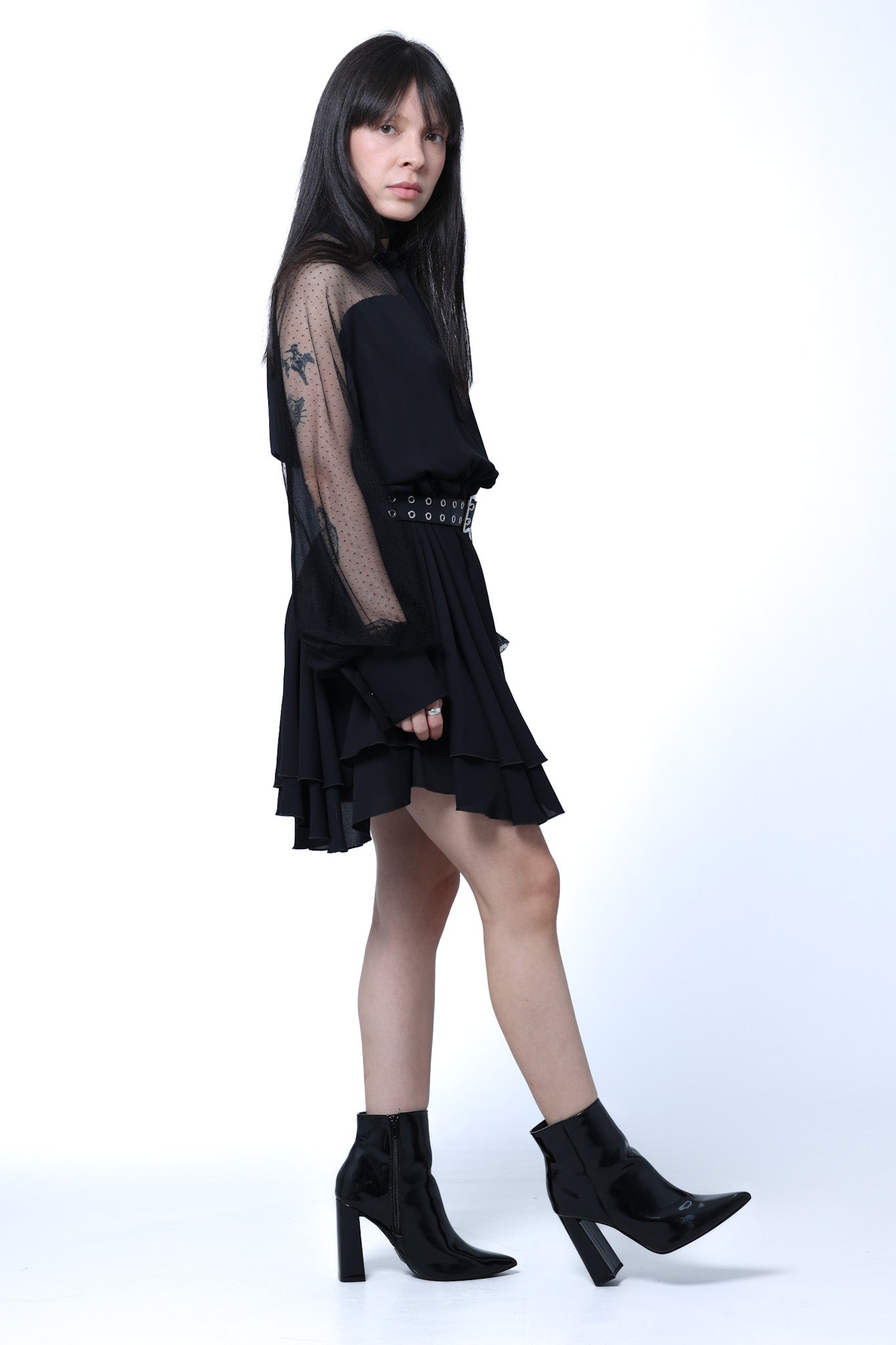 The Midnight Dress is a captivating black masterpiece that combines delicate lace-like textures with alluring translucence, evoking mystery and timeless elegance.