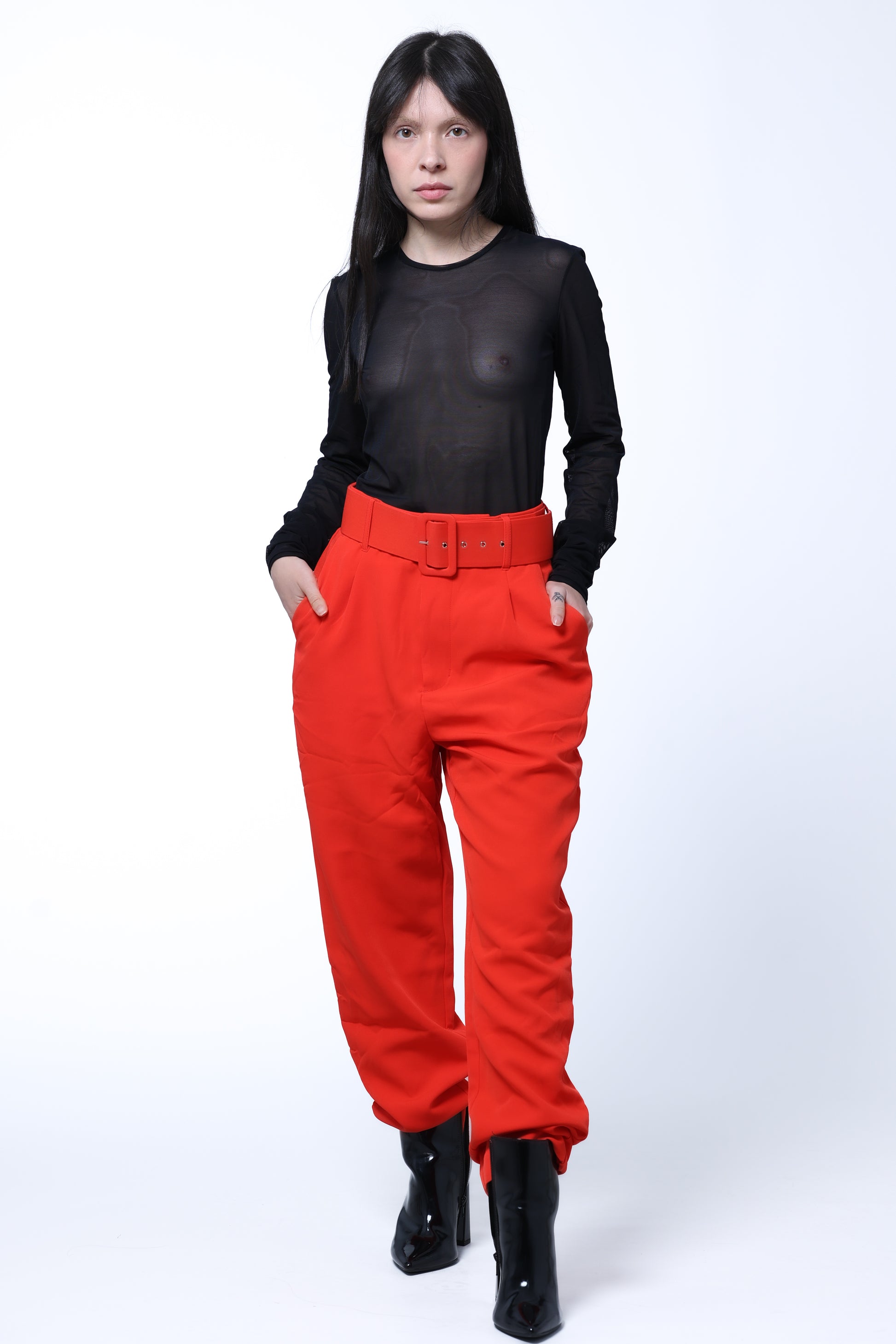 Make a bold statement with our Red Alert ankle-revealing slacks. Featuring a sleek, tapered silhouette and a matching belt to cinch the waist, these vibrant red pants exude confidence and style. The ankle-length design highlights your footwear, while their versatility lets you dress them up or down effortlessly.