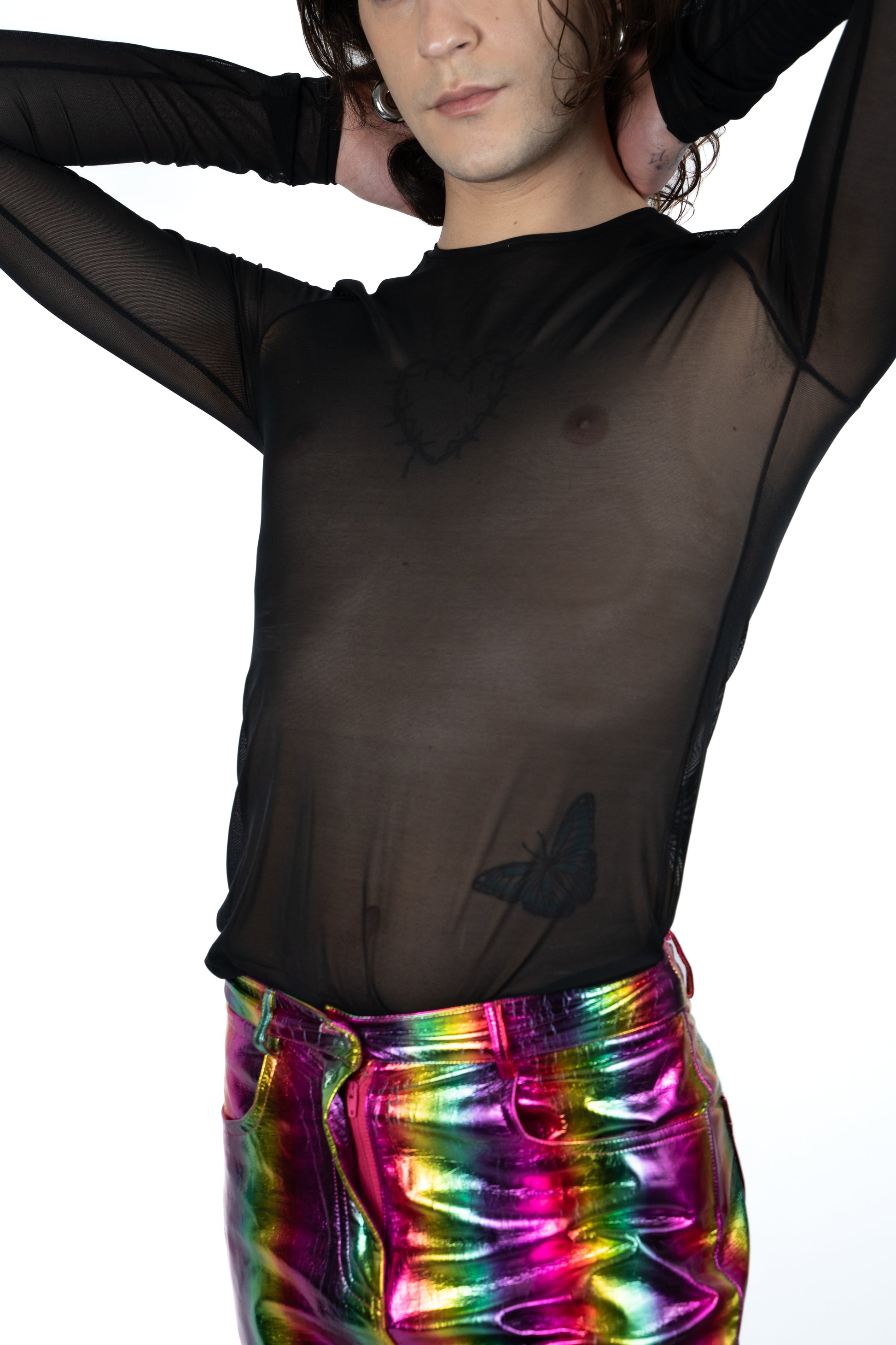 Unleash your mystique with the Taylor Tee from Raven & Rose, a striking mesh top designed for everyone. This versatile piece lets you style it your way—layered over lingerie for a sultry vibe, or worn solo for bold confidence. Its fine mesh, loose fit, and long sleeves strike the perfect balance between allure and sophistication.